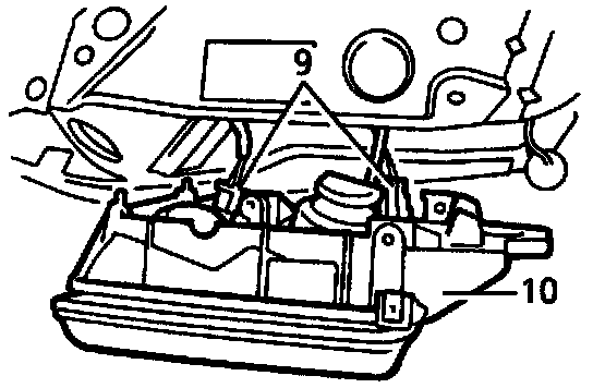 9. Disconnect multiplugs from headlamp and wiper motor.
