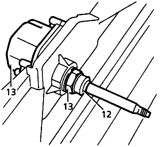 12. Remove rubber boot from headlamp wiper motor retaining nut shaft.
