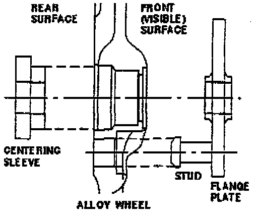 Due to the weight and size of the assembly, use of a regular cone mount is insufficient to ensure accurate location of the wheel on the balancer. In order to guarantee correct mounting, it is necessary to center the wheel (using a centering sleeve) on the pilot diameter on the rearward face of the wheel. To ensure that the wheel is correctly positioned against the balancer flange, use a five stud flange adapter plate and position it into the wheel nut holes on the front face of the wheel (figure 1).