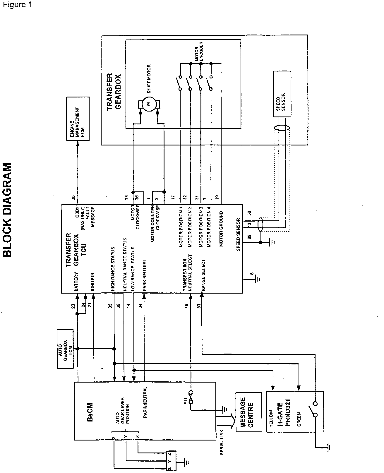 Study the block diagram (Figure 1) to understand the relationships between the various components in the transfer gearbox shift control system.