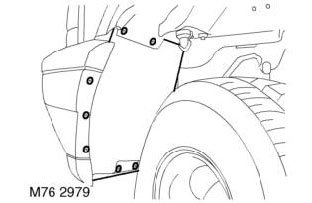 1. Remove 14 screws securing LH and RH wheel arch liner extensions to wheel arch liners and bumper valance and remove extensions.