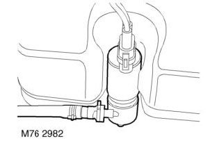 6. Models with headlamp wash: Position container to collect screen washer fluid and disconnect hose from headlamp washer pump.