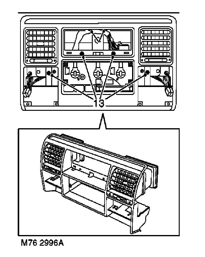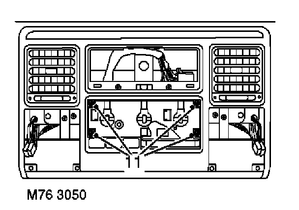 11. Models without A/C: Remove 4 screws securing heater control panel to louvre panel.