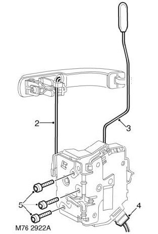 2. Position latch and motor assembly to door. Fit Torx screws securing latch to door and tighten to 7 Nm (5.2 lbf.ft).