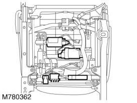 Located beneath the seat, the seat power relay supplies battery voltage to the satellite fuse box. Operation of the relays is controlled by the BCU.