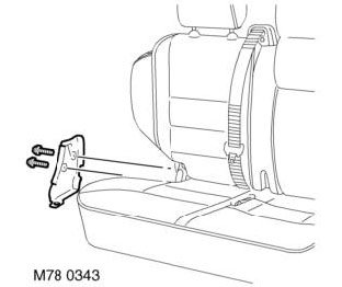 7. Remove 2 screws securing squab release latch housing to seat assembly.