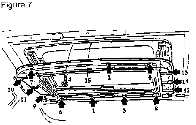 ^ Before starting the tightening sequence, ensure clamping/lower frame is located on the front edge and engages the rear locating pin illustrated as position 15 in Figure 7.