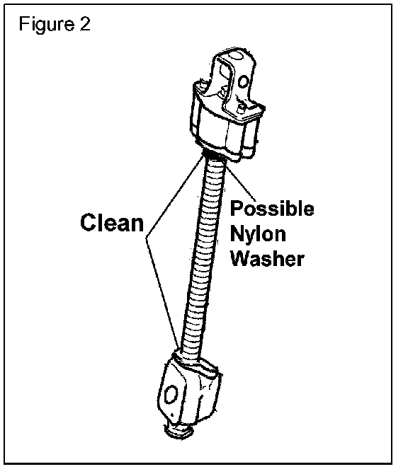 3. Using a wire brush on a bench grinder, remove all traces of dry lube (black film appearance) from the screw drive, paying particular attention to the first 60 mm (2.5 inches) adjacent to gearbox. (Figure 2)
