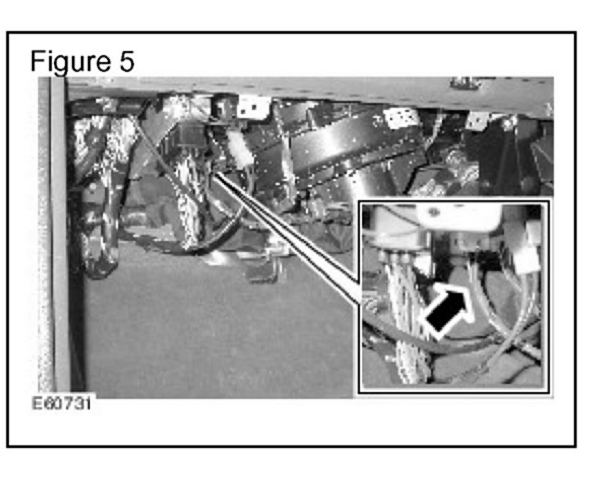 21. From inside the vehicle (passenger side), carefully reposition the carpet/NVH cover from the bulkhead to expose the bulkhead grommet.