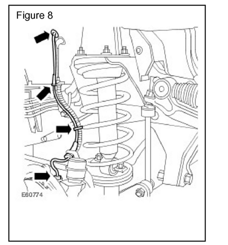 6. Release the harness from the brackets on the inner fender valance, suspension turret and front hub. (Figure 8)