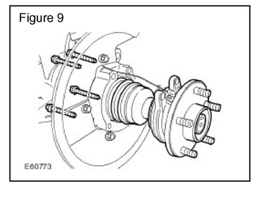8. Clean the area and loosen the four bolts securing the front hub to the swivel hub. (Figure 9)