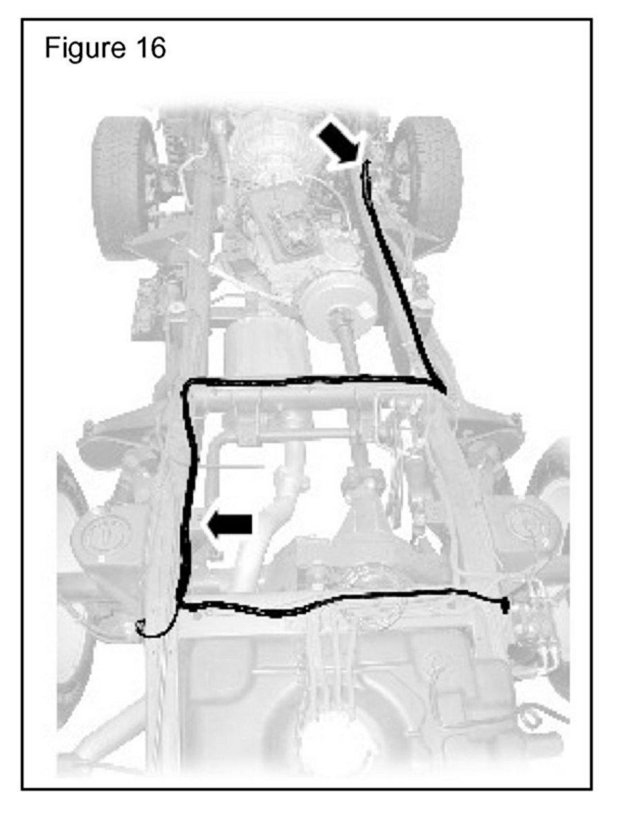 14. Secure the new ABS harness following the route of the main ABS harness to the front of the vehicle (passenger side bulkhead area). (Figure 16)