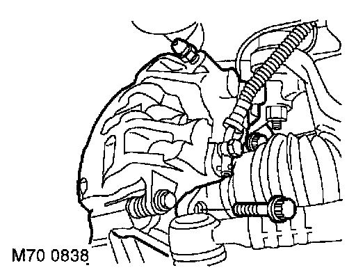 3. Remove 2 bolts securing brake caliper to swivel hub.