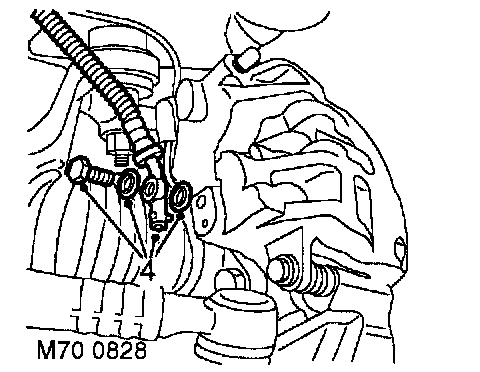 4. Remove brake hose banjo bolt and discard sealing washers.