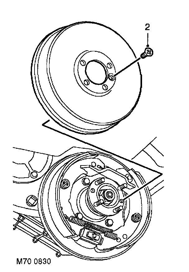 2. Remove screw and remove brake drum.