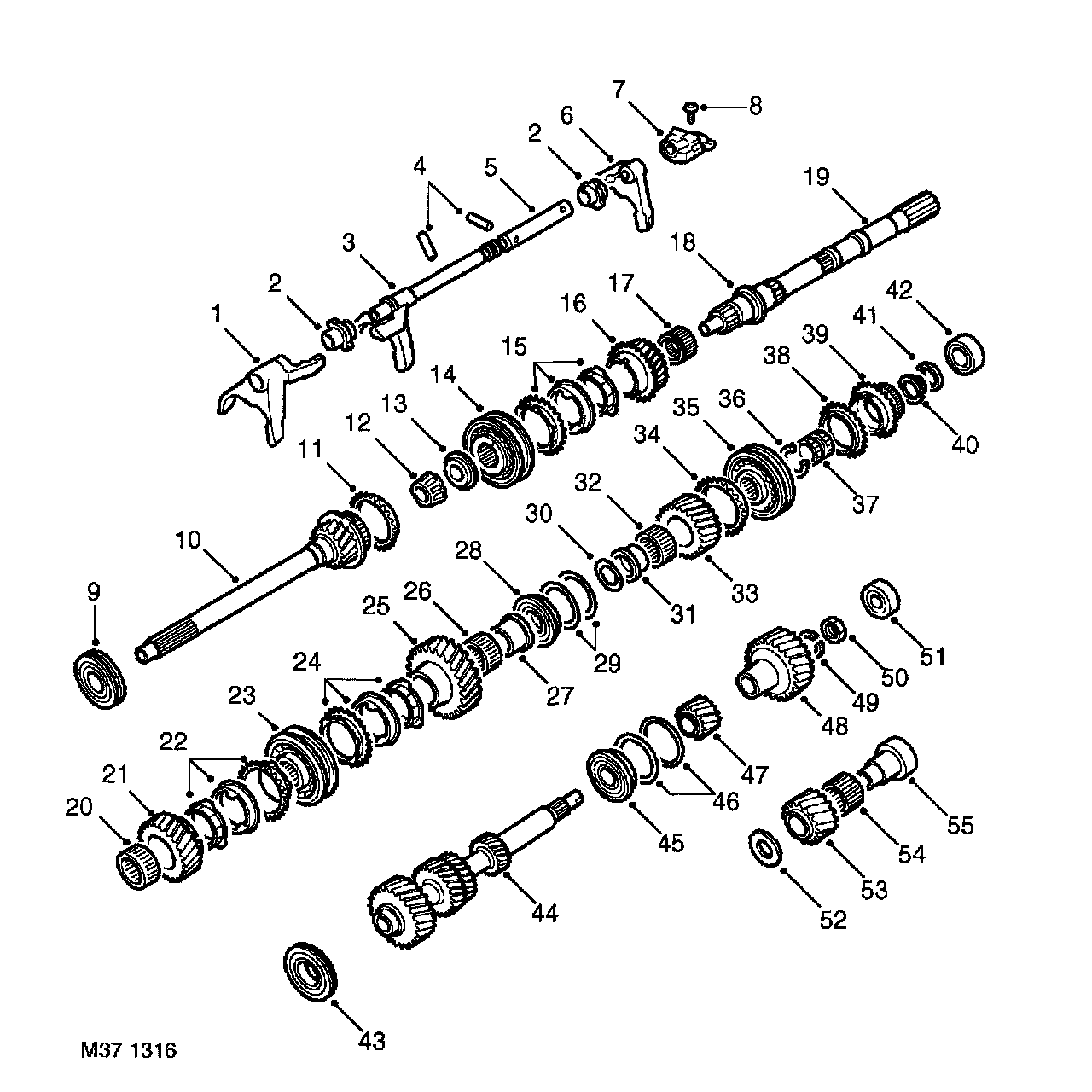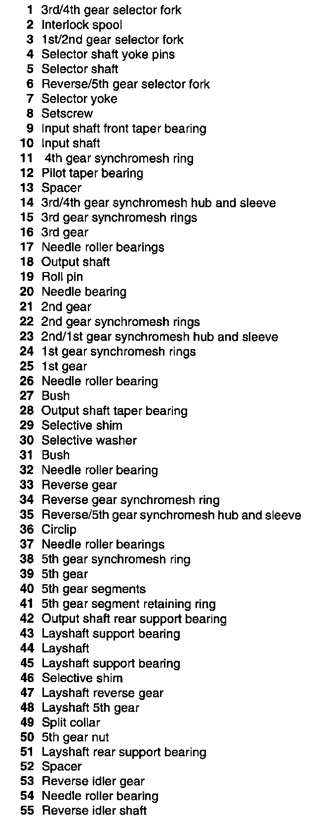 Selector shaft and forks, synchromesh assemblies and gear train part 1 of 2