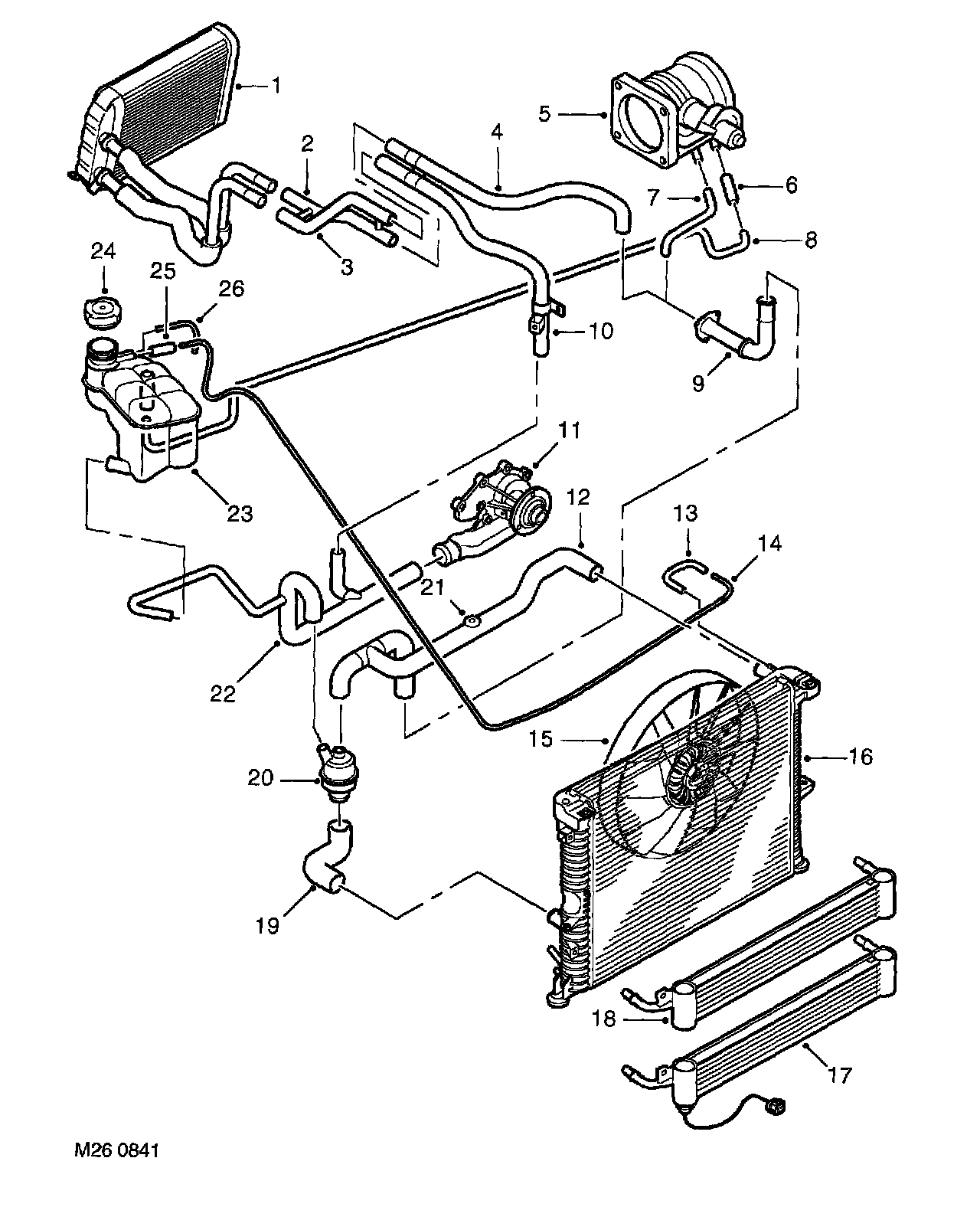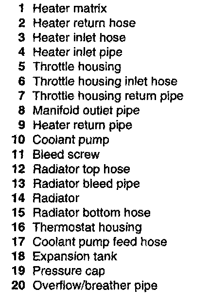 The heater matrix acts as a heat exchanger reducing coolant temperature as it passes through the matrix. Coolant emerges from the matrix and flows into the coolant pump feed pipe and recirculated around the heater circuit. In this condition the cooling system is operating at maximum heater performance,