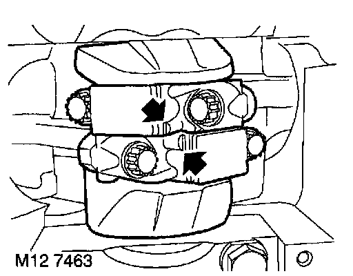 3. Remove 2 bolts securing each connecting rod bearing cap, remove caps and recover connecting rod bearings.