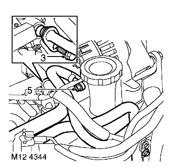 3. Remove 2 bolts securing coolant rails to inlet manifold and cylinder block.