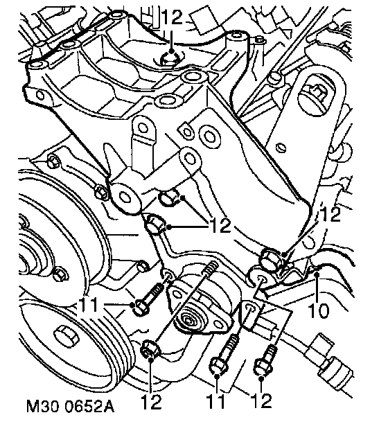 13. Position alternator, fit bolts and tighten to 45 Nm (33 ft. lbs.).