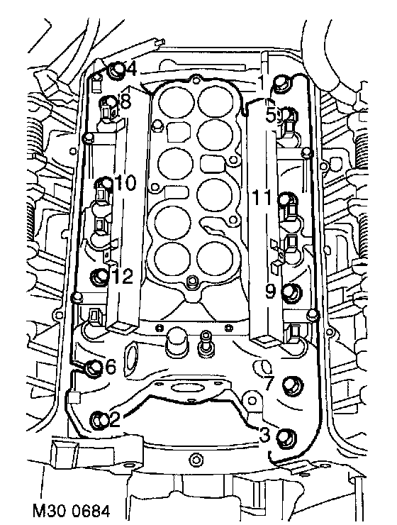 17. Using the sequence shown, remove 12 bolts securing the inlet manifold.