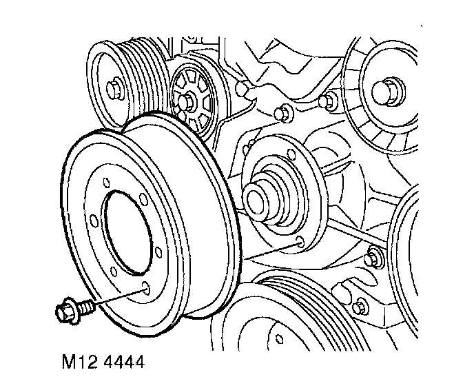 9. Ensure mating faces of coolant pump pulley and drive flange are clean, fit pulley and tighten bolts to 22 Nm (16 in. lbs.).