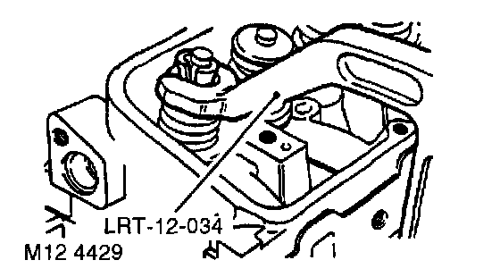 3. Fit tool LRT-12-034 to valve and tighten screw to compress valve spring sufficiently to release collets from valve spring cap.