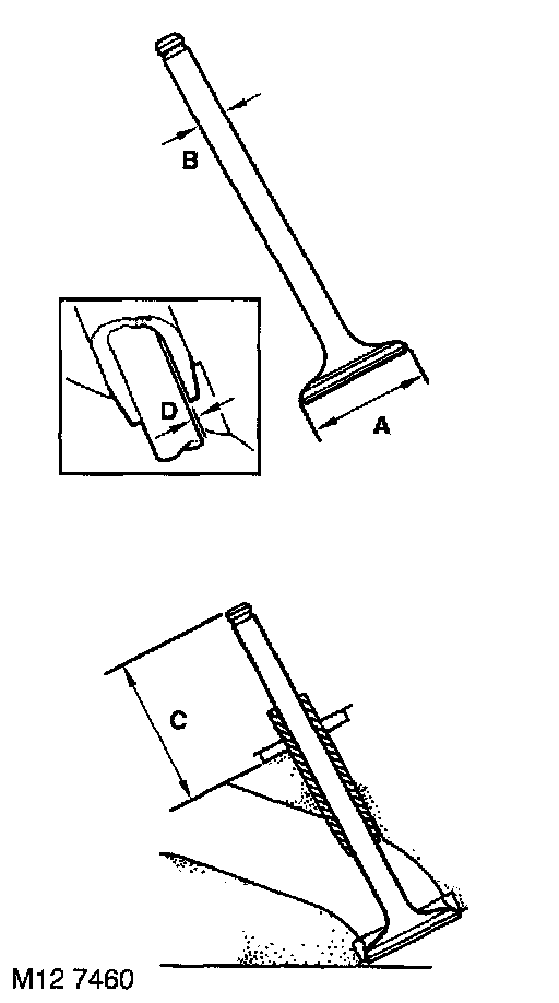^ Valve stem to guide clearance 'D': Inlet 0.025 to 0.066 mm (0.001 to 0.002 in).