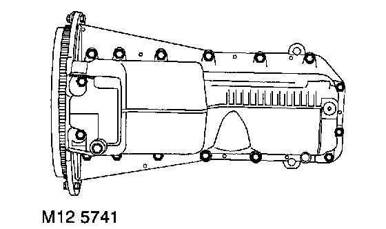 1. Remove 3 nuts and 14 bolts securing sump to cylinder block.