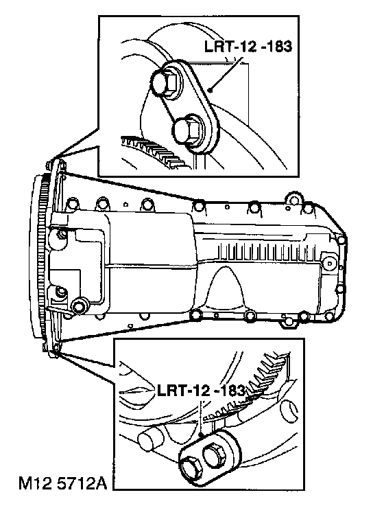 5. Noting that the two parts of the tool are handed, fit tool LRT- 12-183 to the engine back plate using bell housing nuts and bolts.