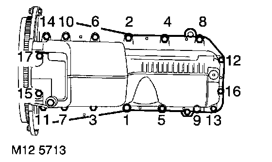 7. Fit the sump nuts and bolts, and working in the sequence shown, tighten to 22 Nm (16 ft. lbs.).
