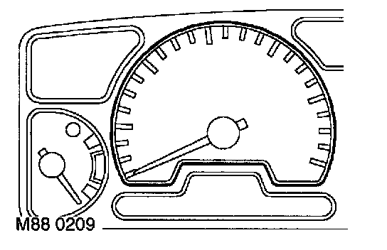 The input for the tachometer is from the ECM. It is a digital signal at 2 pulses per engine revolution. When the ignition is switched on with the engine not running, the ECM will generates pulses equivalent to 228 rev/min for diagnostic purposes. The tachometer will not register a reading, as it only indicate engine speeds above 228 rev/min.