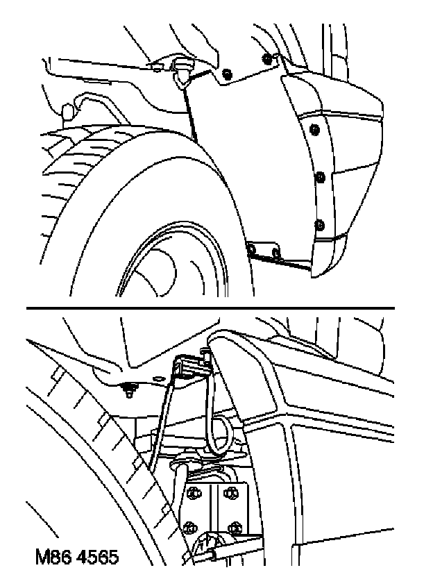 3. For RH lamp: Connect multiplug to harness. Fit wheel arch liner extension, secure to bumper valance and liner with screws.