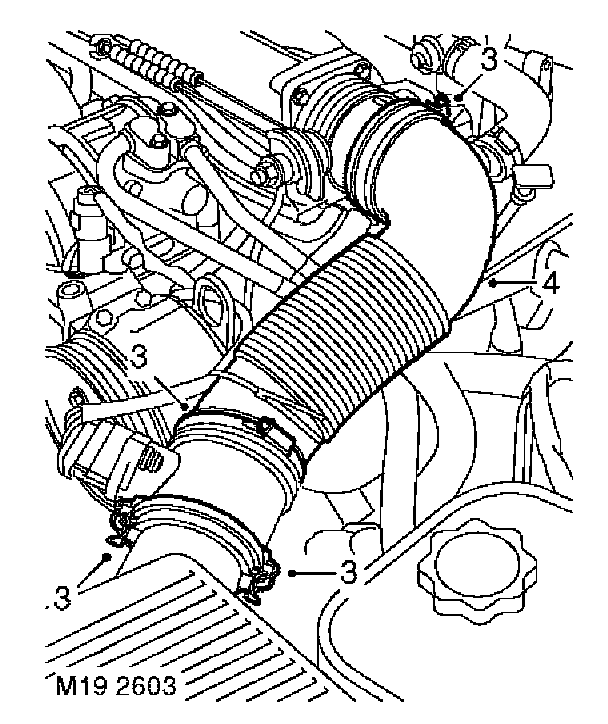 3. Position air intake hose, secure MAF sensor clips and tighten intake hose clips.