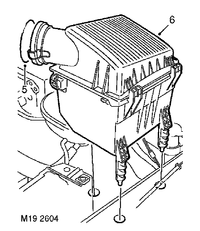 6. Release air cleaner assembly from 3 grommets and remove assembly.