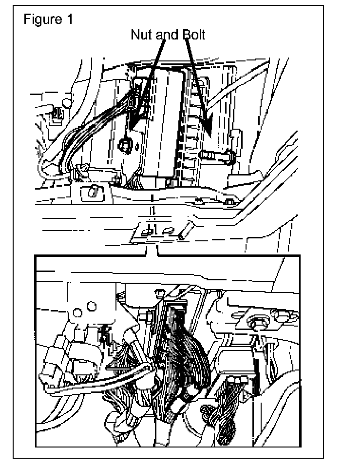 8. Remove nut and bolt (10 mm) securing BCU into bracket assembly. (Figure 1)
