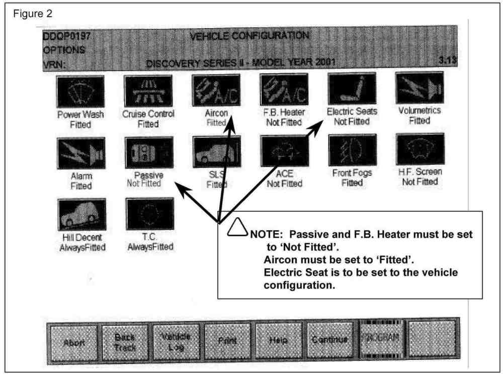 Failure to use this procedure to install a replacement BCU in a Discovery Series II vehicle could result in incorrect vehicle programming and enabling of non-NAS features such as Passive Immobilization, EKA, or Fuel Burning Heater.