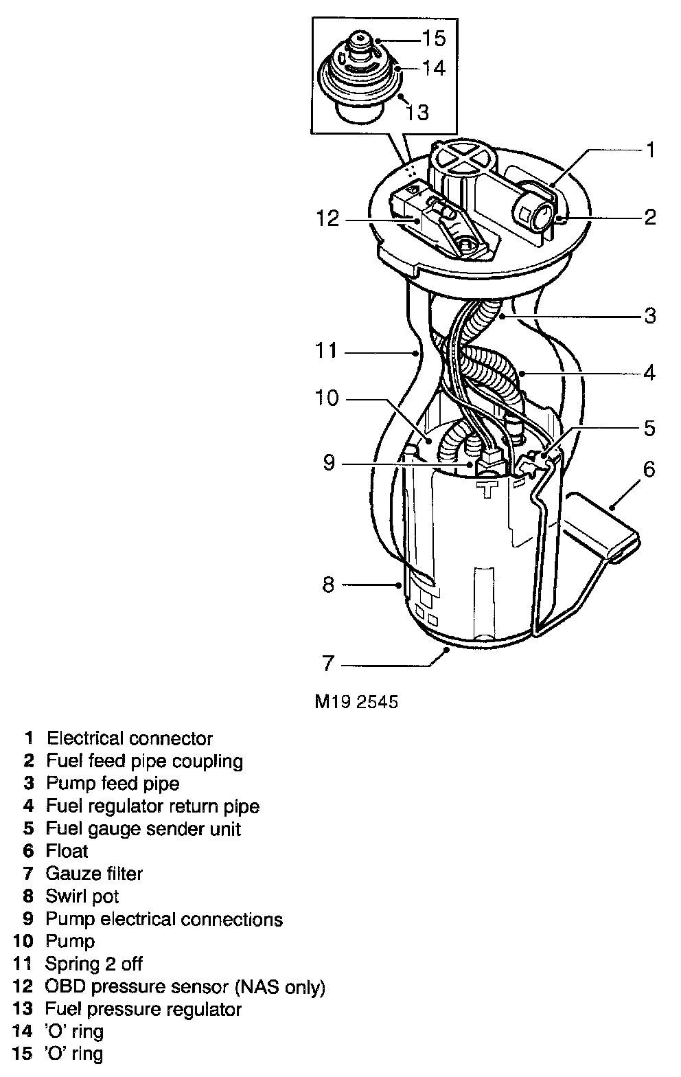 Surrounding the pump is a large fine paper filter element which further protects the fuel pressure regulator, engine and injectors from particulate contamination. The paper filter is not a serviceable item and removes the requirement for an external in-line filter.