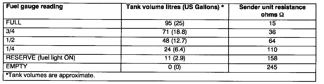 Battery voltage is supplied to the potentiometer. The output voltage from the potentiometer varies according to the resistance through the potentiometer in relation to the fuel level. The output voltage is connected to the fuel gauge in the instrument pack. The fuel gauge receives a battery voltage input and this is compared with the output voltage from the potentiometer. The difference between the two voltages determines the deflection of the fuel gauge pointer.