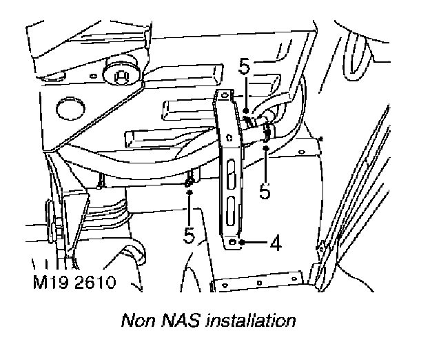 4. Drill out rivet securing lower part of mud flap support bracket and release bracket