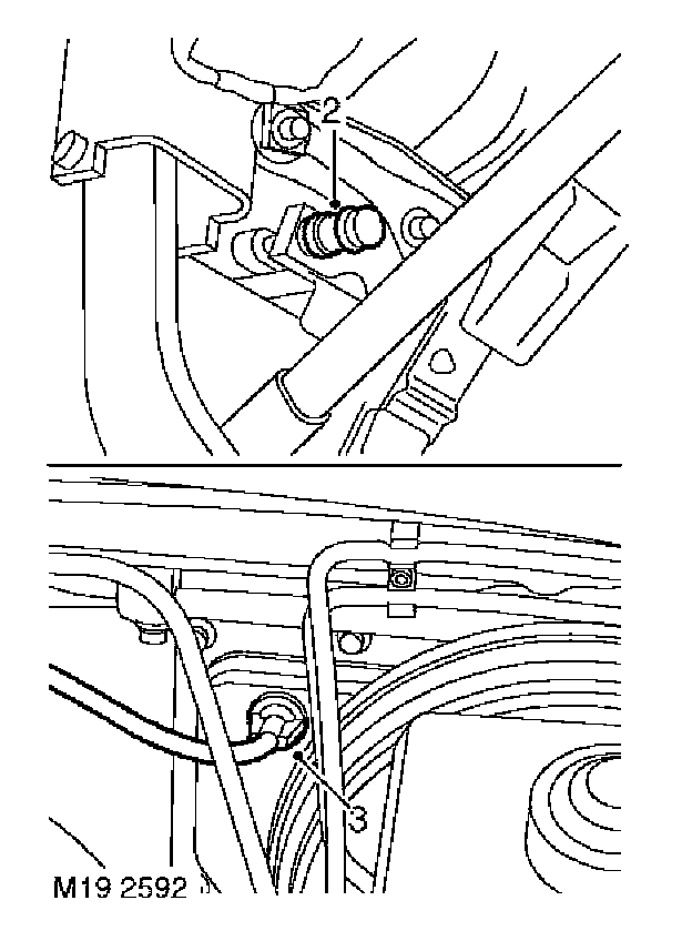 2. Position inner cable to operating lever and connect outer cable to abutment bracket and retaining clip.