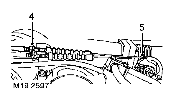 4. Release outer cable from clip, loosen lock nuts and remove outer cable from abutment bracket.