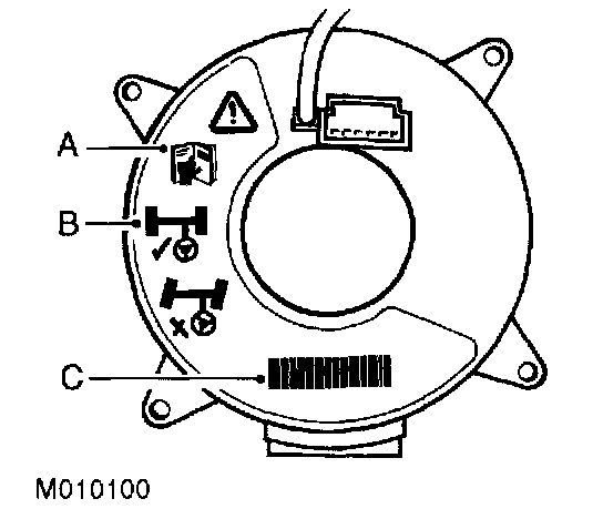 Warning symbols are displayed at various positions in the vehicle (either in a suitable prominent position such as driver and passenger side glass, or attached to the component itself) to indicate SRS items which must be treated with particular care. Exact positions of SRS warning labels may vary dependent on legislation and market trends.
