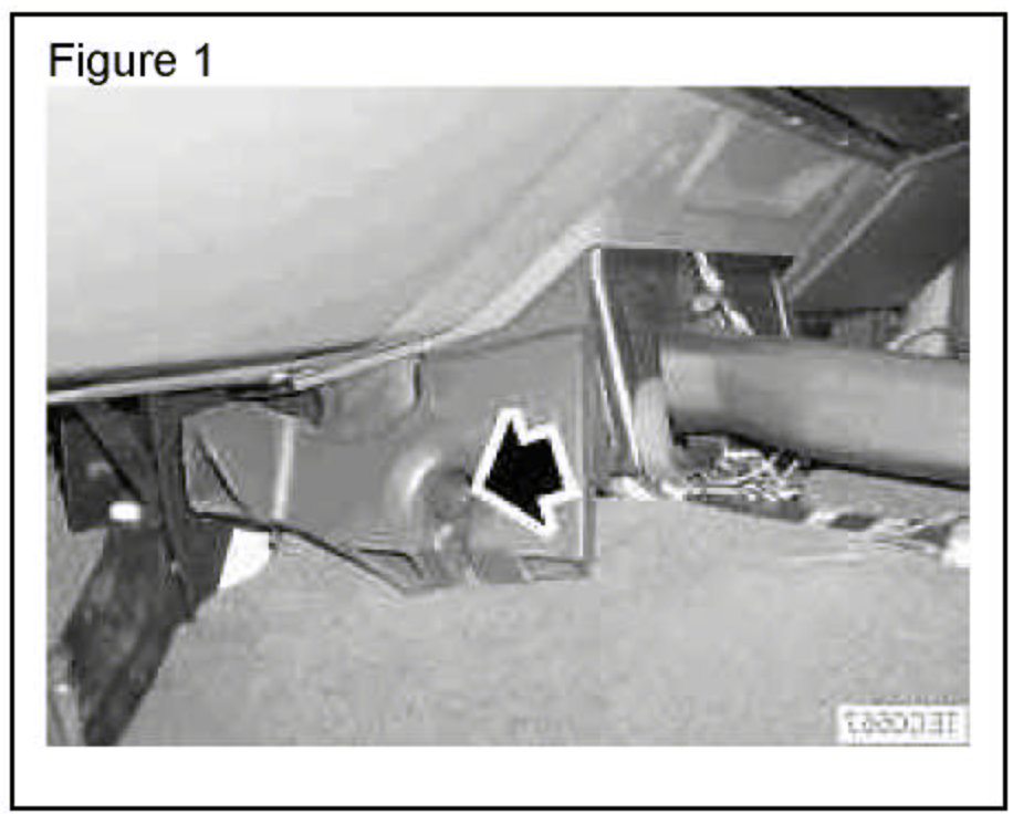 5. Remove the screw securing the foot well heating duct (Arrowed in Figure 1).