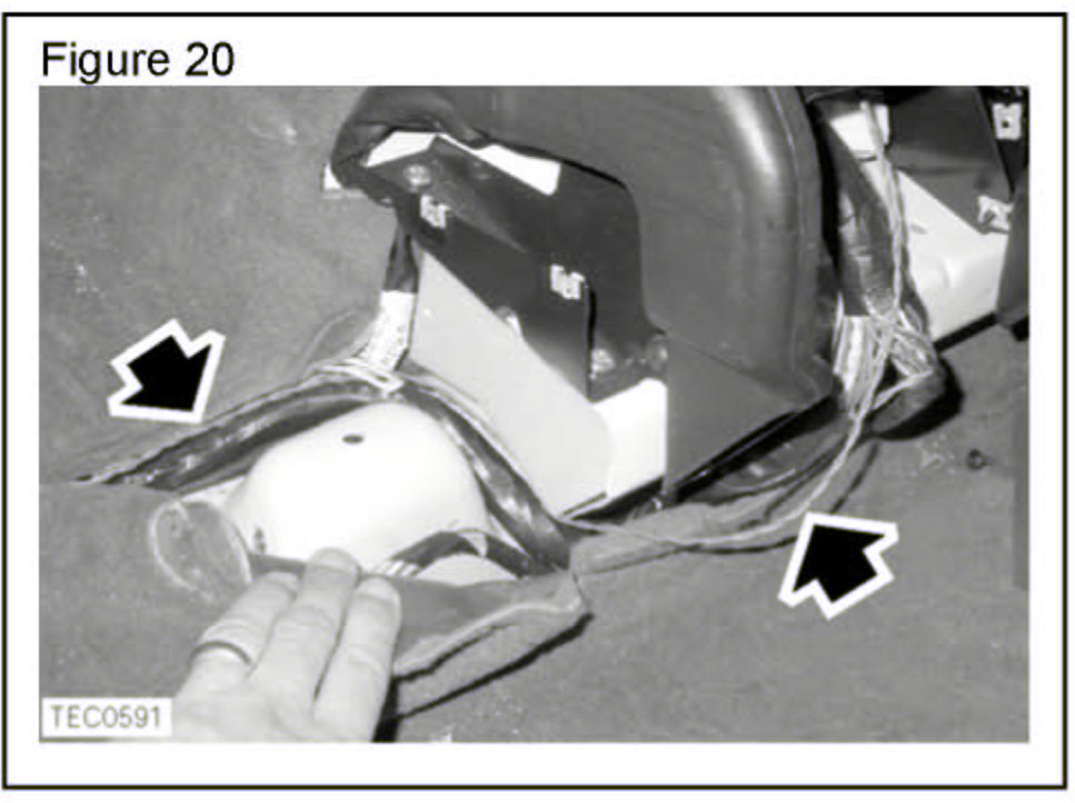 21. Route harness under the carpet following the route of the existing harness. (Figure 20)