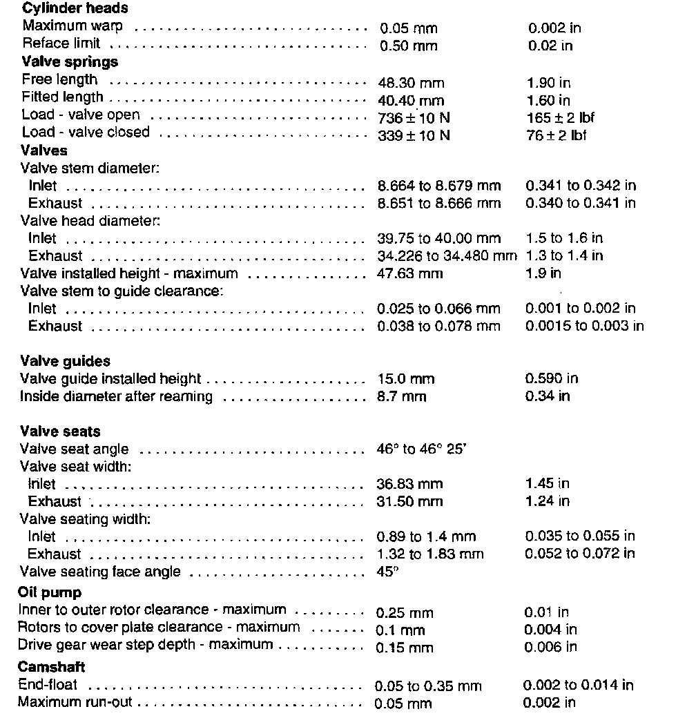 V8 Technical Data Cont.: