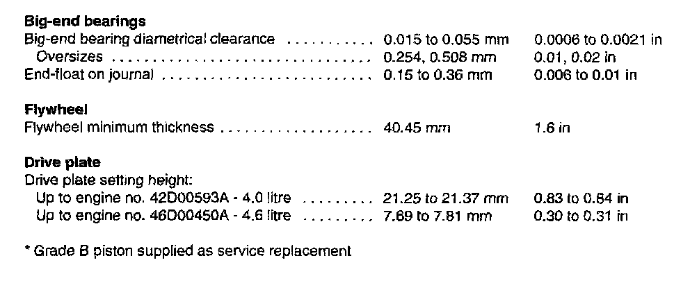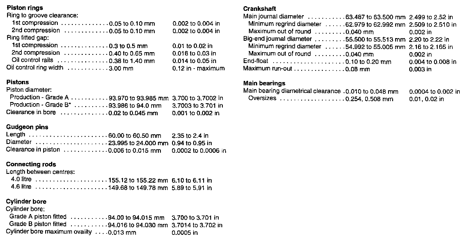 4.0L/4.6L V8 Technical Data: