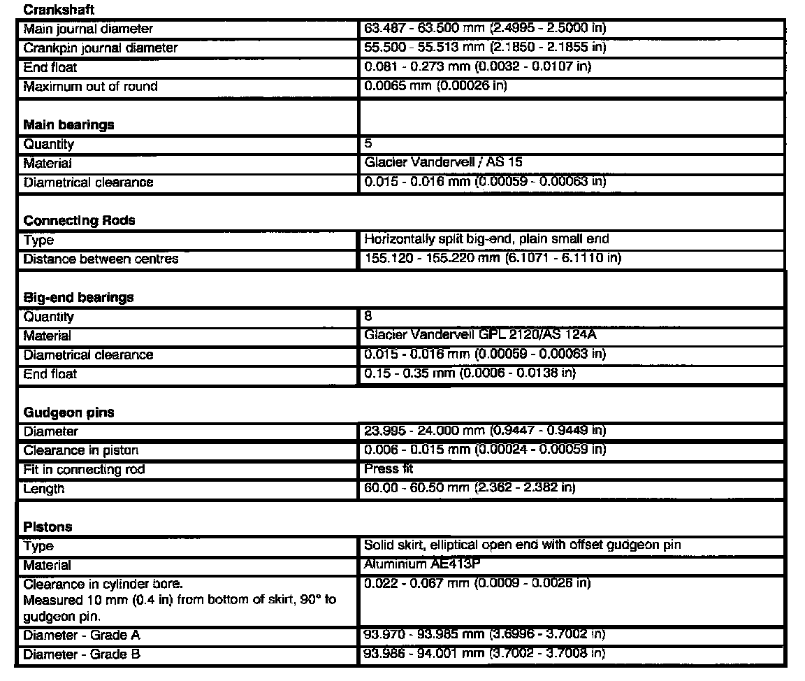 4.0L Technical Data Cont.: