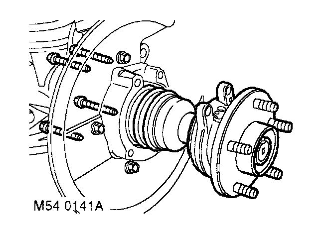 5. Remove 4 bolts securing wheel hub to steering knuckle.
