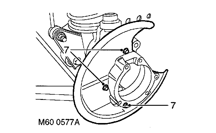 10. Clean mudshield and steering knuckle mating faces. Position mudshield, fit bolts and tighten to 10 Nm (7 ft. lbs.).